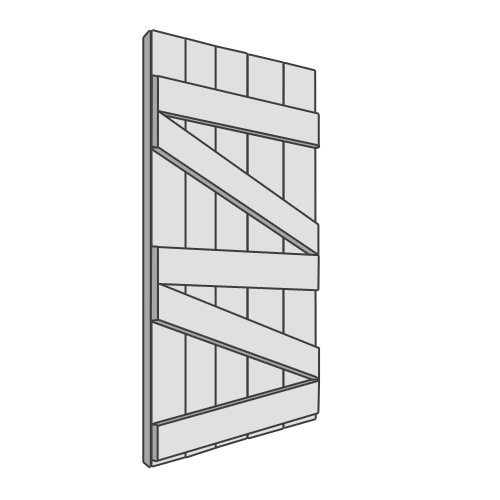 - Paint the rear face of the door next using the 2" paintbrush, first covering each vertical panel, and finishing with the ledges and braces.